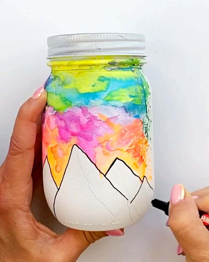 - Once the background is to your liking and dry, add the mountains with a black paint pen.
