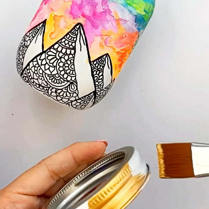 - For a finishing touch, I painted the top of the mason jar with gold acrylic paint.