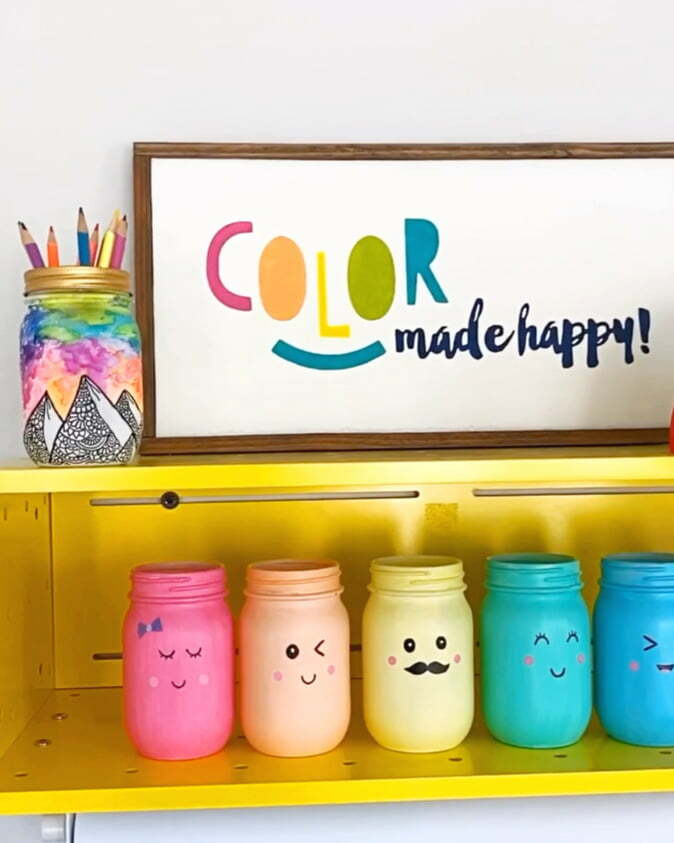 Your finished mason jar is perfect for storing pens, pencils and more.