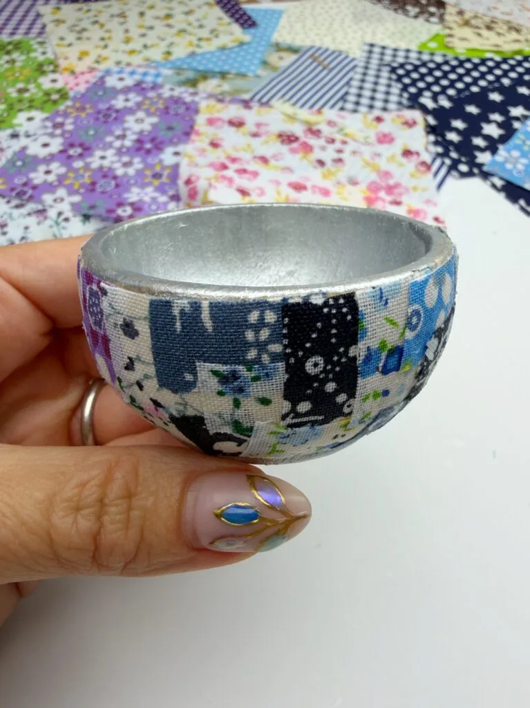 - Thinner fabric pieces are easier to use and mold around the curves of the bowl.