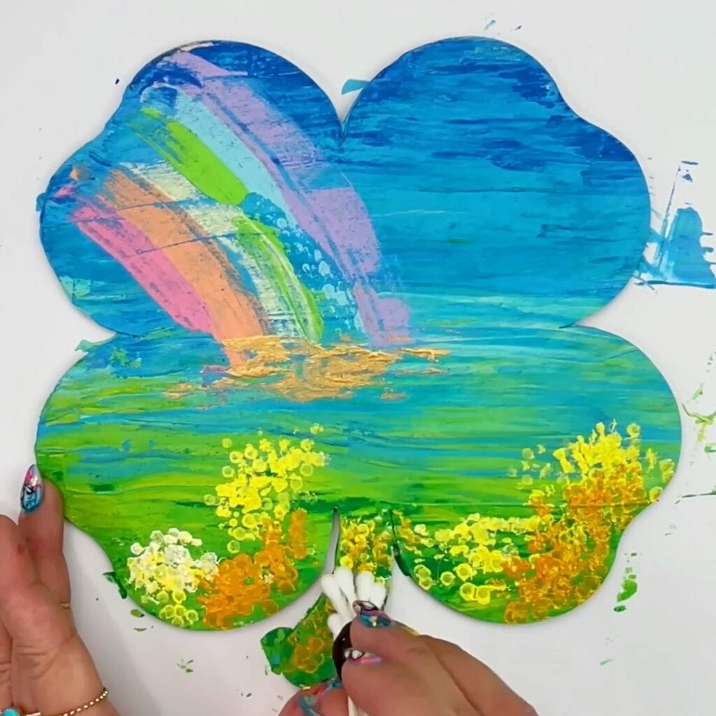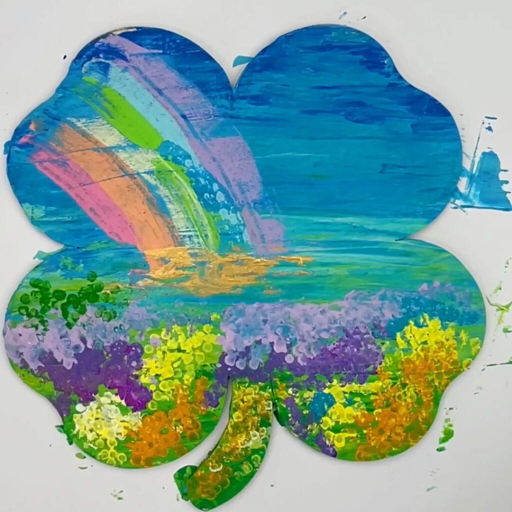 This shamrock painting idea is a great St. Patrick’s Day art idea but you could also just paint it any time of year. For more painting ideas, check out this abstract heart painting idea and this sloth painting idea.