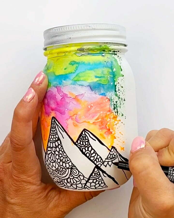 - Once the background is to your liking and dry, add the mountains with a black paint pen.
