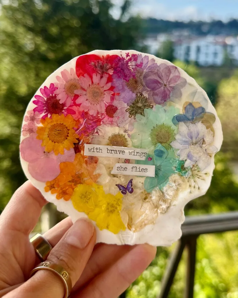 This pressed flower shell craft is a beautiful way to bring together florals and ocean treasures. Each resin shell becomes a one-of-a-kind canvas that highlights the delicate beauty of pressed blooms. Whether you display it on a shelf, gift it to a friend, or use it as a small trinket dish, the result is both simple and stunning. It’s a relaxing, creative project that doesn’t require perfection…just a love for nature and a little imagination.