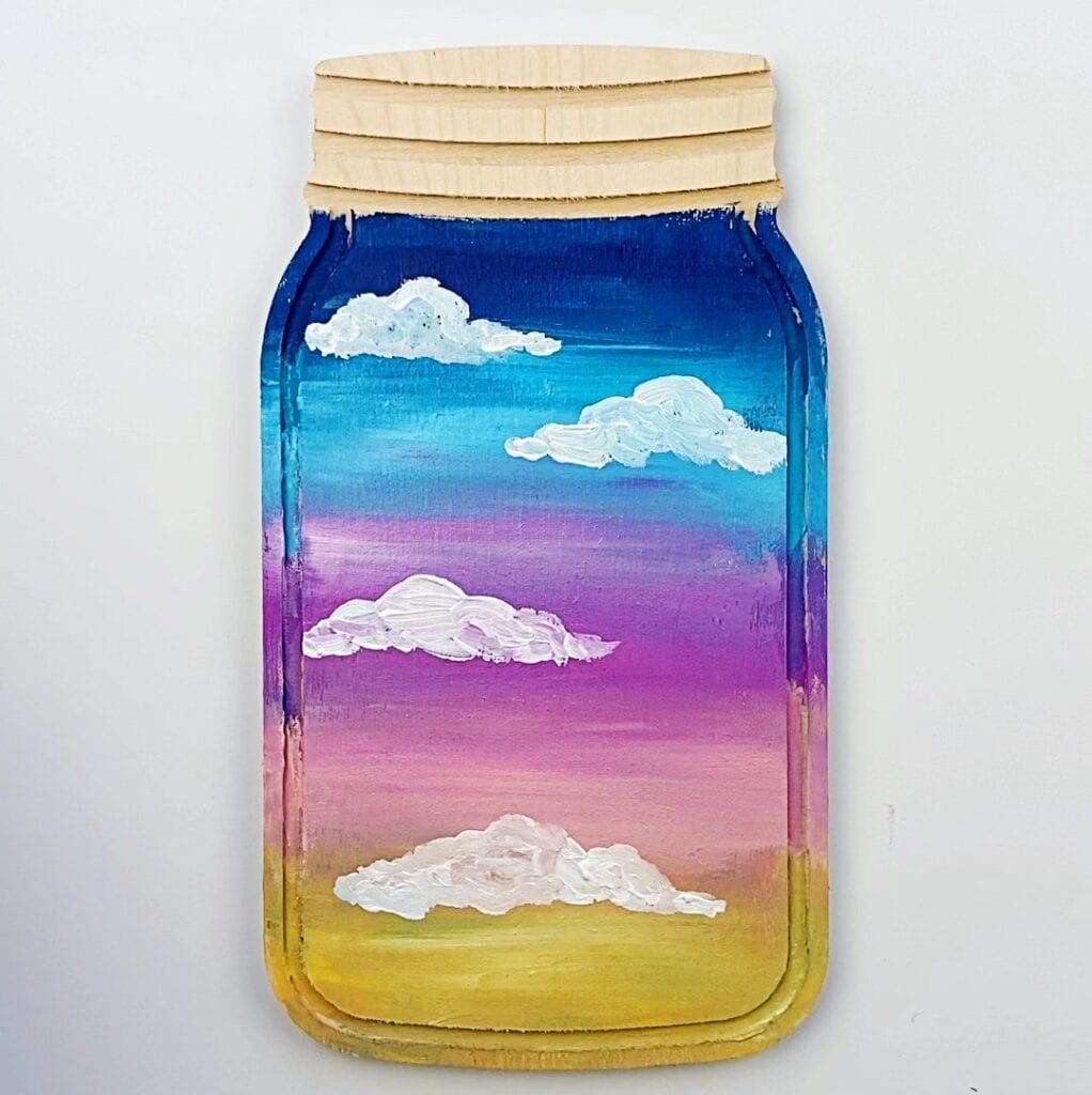 - At the top of the mason jar wood cutout paint silver for the lid and add dark gray lines. Â Â