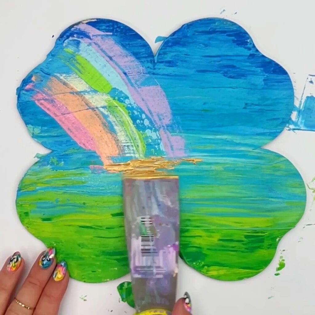 This shamrock painting idea is a great St. Patrick’s Day art idea but you could also just paint it any time of year. For more painting ideas, check out this abstract heart painting idea and this sloth painting idea.