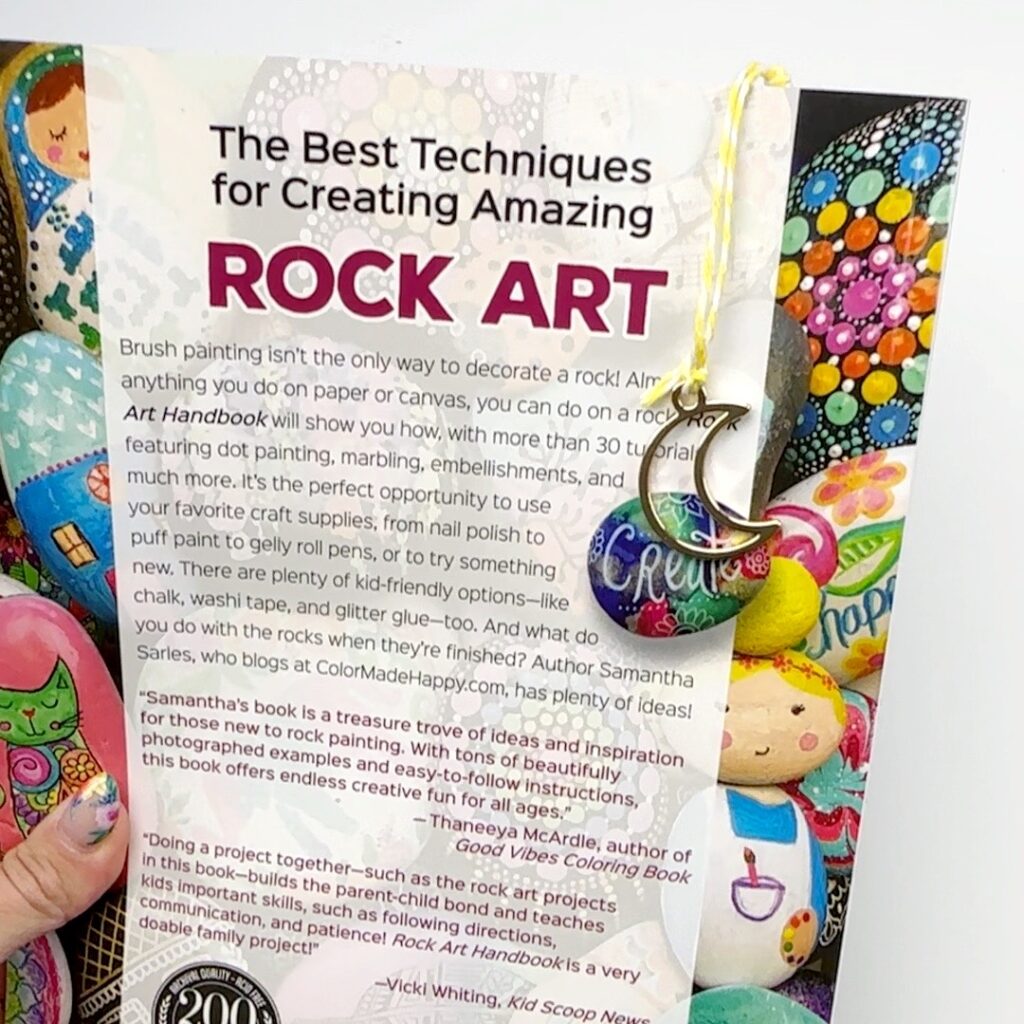 If you want to add a bookmark charm, knot a piece of baker’s twine or string through the hole and then on the other end add a favorite charm.