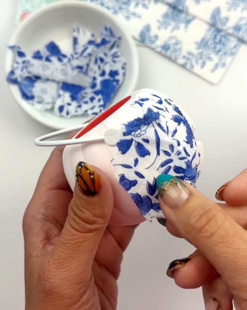 Step 5. Place a napkin piece on top of the Mod Podge glue and then add another thin layer on top.
